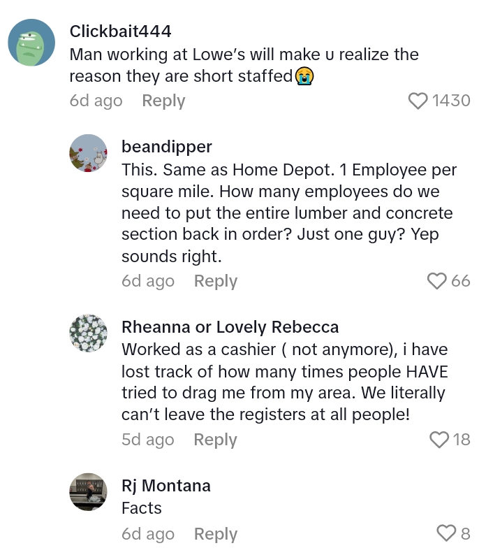 “You’d be amazed how fast someone a Lowe’s come and help you.”