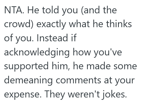 When he got home he was [angry], said I embarrassed him and that it was “just a joke.” Said I was too sensitive and ruined his night.