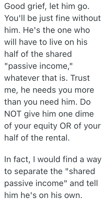 I work and he does not. He just lives off of the passive income.