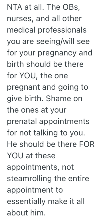 I don’t even want him to go the prenatal appointments anymore because no one talks to me.