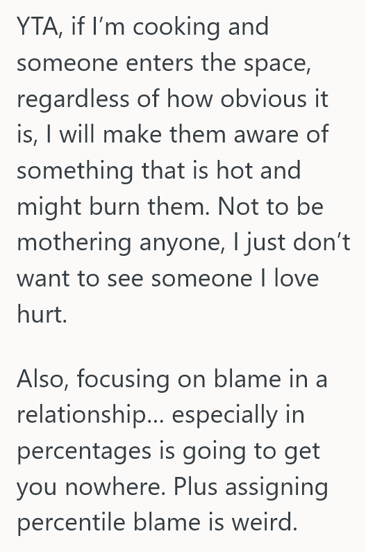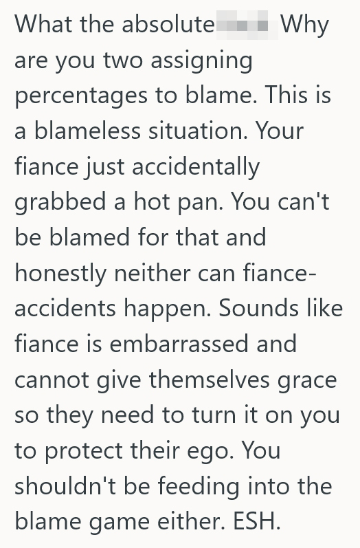Her Fiancé Burned Himself On A Hot Pan, But They Disagree About Which One Of Them Is More To Blame