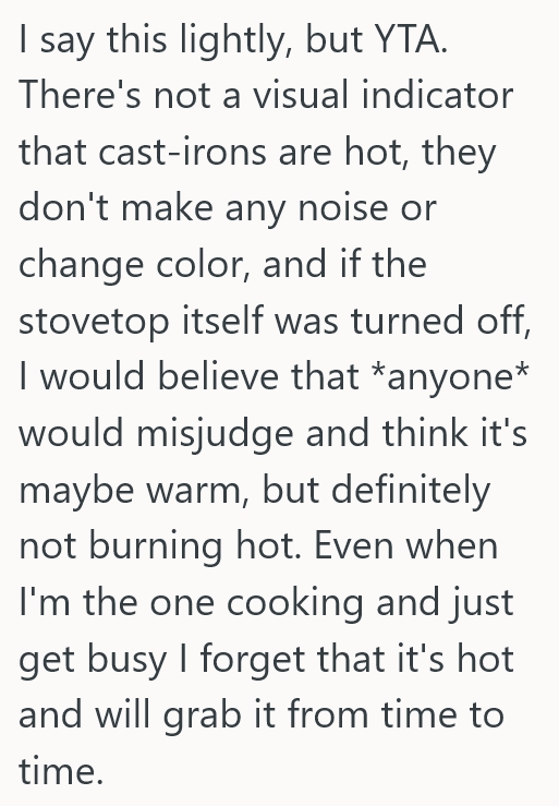 Now the question becomes: was I the [jerk] for not adequately warning him about the hot cast iron?