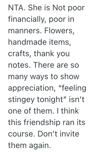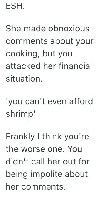 AITA for telling my friend that she doesn’t get to have an opinion about my cooking because she is poor?