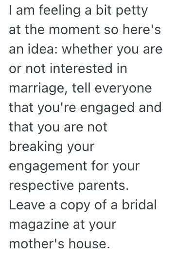 I’ve had a few family members reach out to me about the situation and are on my side, however mom twisted the story somehow (idk the full details it’s still very confusing) and other people believe we’re in the wrong for ‘not wanting our parents to be happy’.