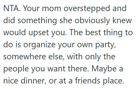 Now my mom is acting like I’m the dramatic one and says I “ruined the celebration over something small.”