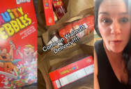 “There’s one, two, three, four, five boxes of Fruity Pebbles. Like, what is going on? I clearly do not need five.”