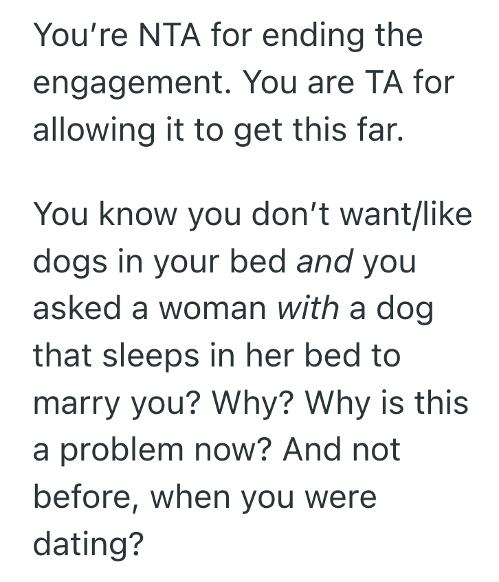AITA for wanting to end our engagement because I feel like she will never stop letting the dog in the bed?