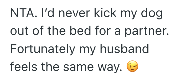 I’ve asked my fiancée to keep her dog (got before we met) out of our bed as I think it’s disgusting, foul, unsanitary and its my personal sleeping spot and just don’t want an animal in my bed.