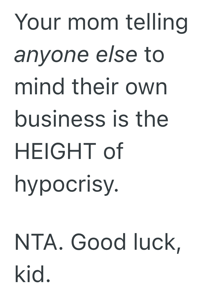 My mom said I had no business disrespecting her, and I pointed out she disrespects everyone else when she’s so judgmental.