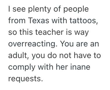 Then, his teacher asked me to cover up my tattoos when I pick him up and drop him off.