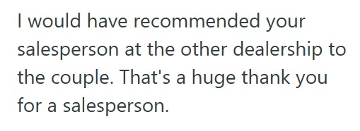 He assumed he’d like the sales department too, but he was very wrong. His experience was so bad, that he decided to use something one of the salesmen said to him to his advantage and then rub it in his face.