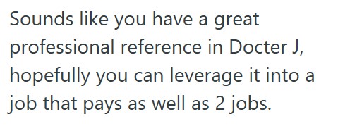 “Having a second job won’t cut it with me; you better fix that pronto” ? You got it, dude!