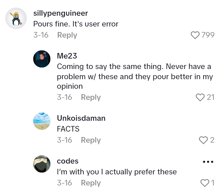 “How am I supposed to pour this? Have you ever tried to actually pour one of these?”