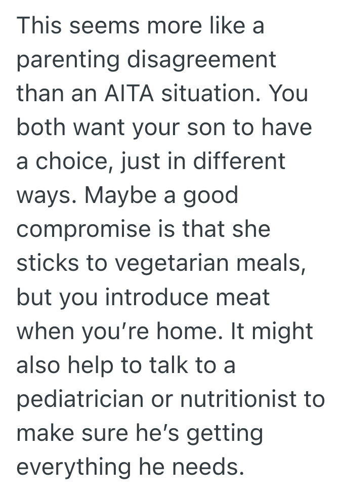 Tags: · aita, diets, lifestyle choices, marriage disagreements, parenting, parenting disagreements, picture, raising a child, reddit, top, vegetarian