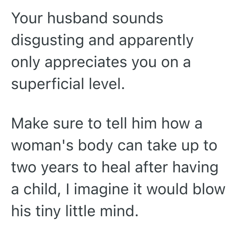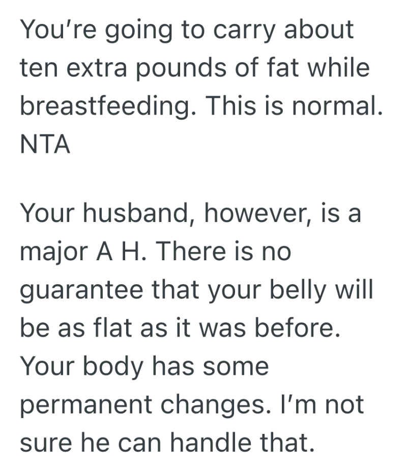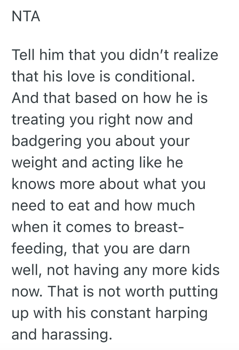 However my husband started mentioning my weight at 2 weeks postpartum, literally.