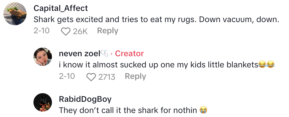 Her name is Neven and she took to TikTok to talk about her Shark vacuum.