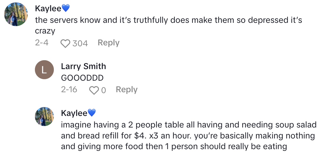 Owen and his friends decided to load up on OG’s famous breadsticks, soup, and salad instead of eating their main courses.