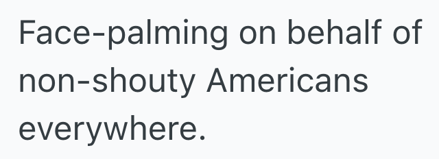 I’ll be calling her Shouty American (SA) for short –