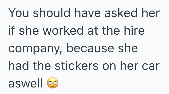SA: NO! She works for them! Look at the stickers on her car! (They’re the same stickers on every hire car)