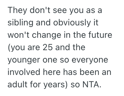 We have discussed how they don’t consider me as their siblings, so I don’t count them as mine either.