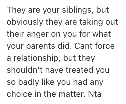 Those handful of times I saw them, they were very clear about not wanting to talk to me and how I was not their brother or their family.