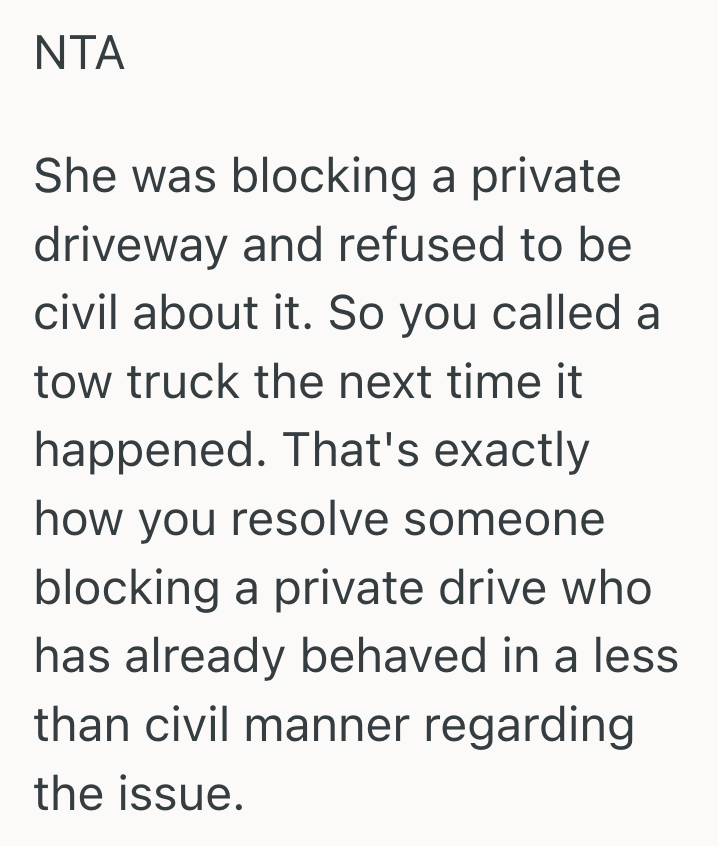 Neighbor Kept Blocking His Driveway Without Listening, So He Had Her Car Towed To Make His Message Clear
