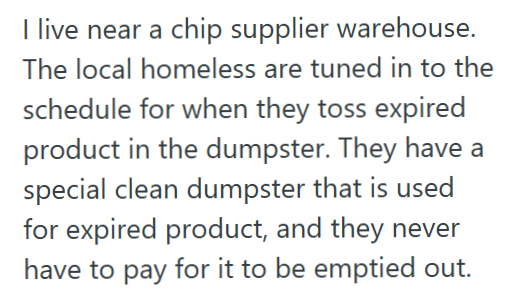 This seemed a little ridiculous, as they would also make us compact hundreds of cases of chips when they were too close to their expiry date (like less than 6 weeks).
