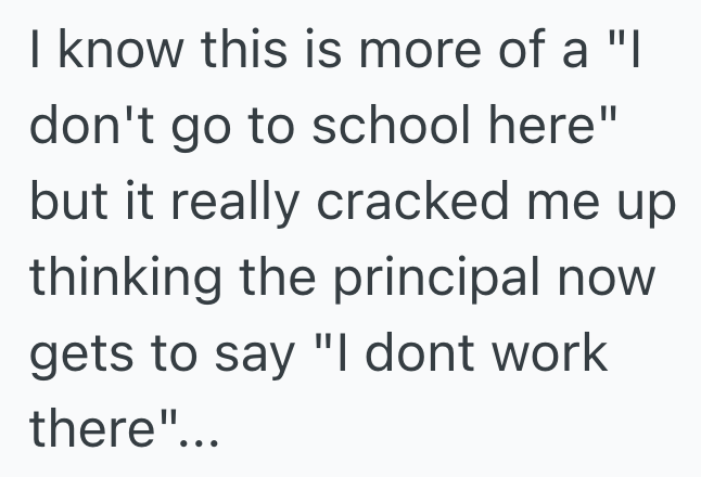 Now get out of my office or I will call the police and have you arrested for trespassing in a school (school are protected places, so you get in way more trouble here for trespassing then usual)