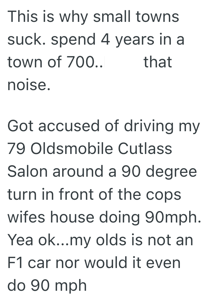 For a neighbor so against speeding, she doesn’t have much integrity when it comes to her own driving habits.