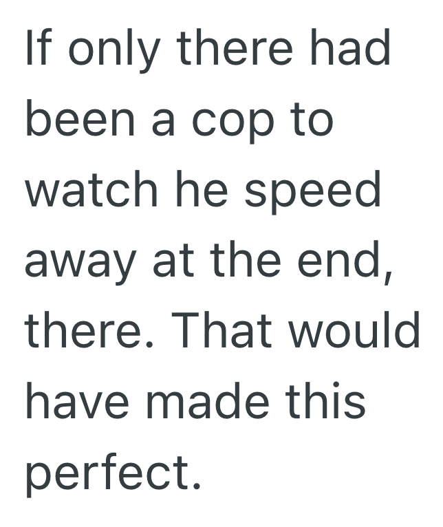 Lovely neighbor speeds off in frustration, hitting at least 45 before she was out of sight.