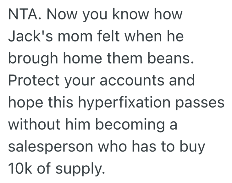 I was frustrated because I had said no, then adjusted to let him get a single pan, and he still bought everything.