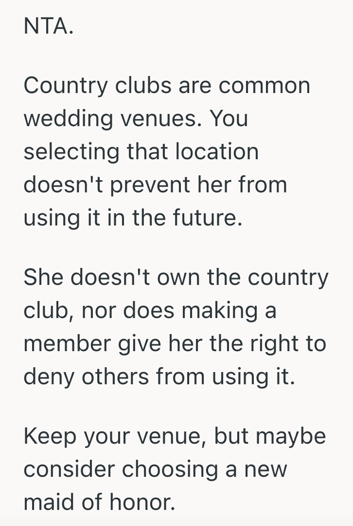 She Chose A Venue For The Wedding Reception And Her Friend Is Upset Because That Was Her Choice For Her Own Wedding