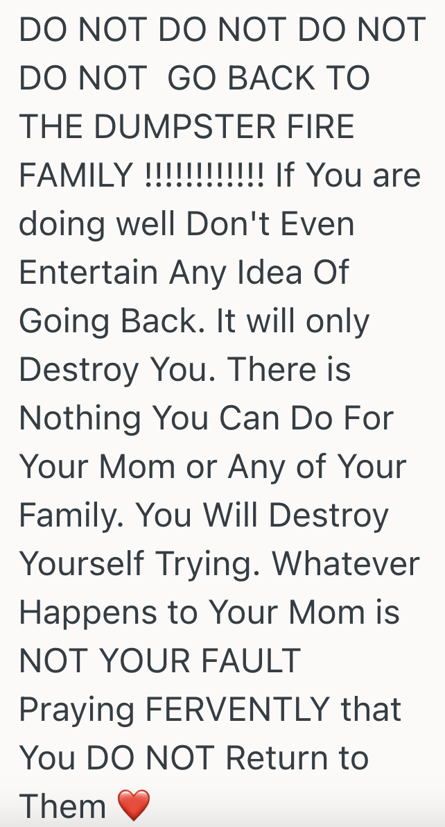 I feel torn because I do still hold love for my mom, but getting pulled back into all of this will undo years of therapy.