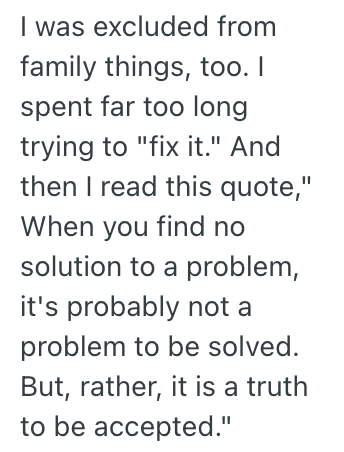 I was the only one who never got an invitation to Bea’s graduation (she thought I wouldn’t want to go), when our grandfather passed away they had a big family get together a few days later.