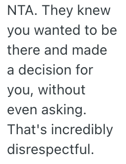I told her that was an issue for me to deal with and that if I’d asked, my manager would have let me leave to enjoy the moment with my family, but instead they were all there enjoying that beautiful moment without me…again.