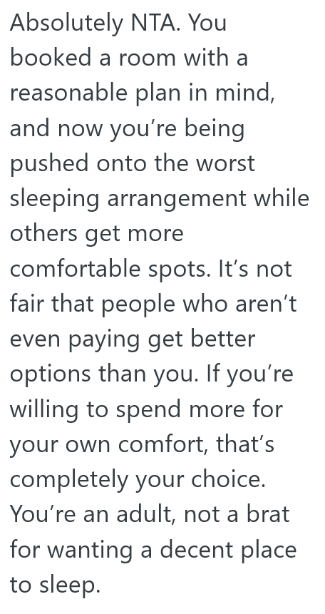 Why are they letting two ppl, who aren’t even paying, to sleep on the bed and not the pullout?