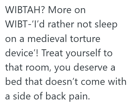 I’ve told them I stayed at that hotel with family before and slept on that pullout and it’s a mattress that’s 3 inches thick and you feel all the bars and it’s just so uncomfortable.