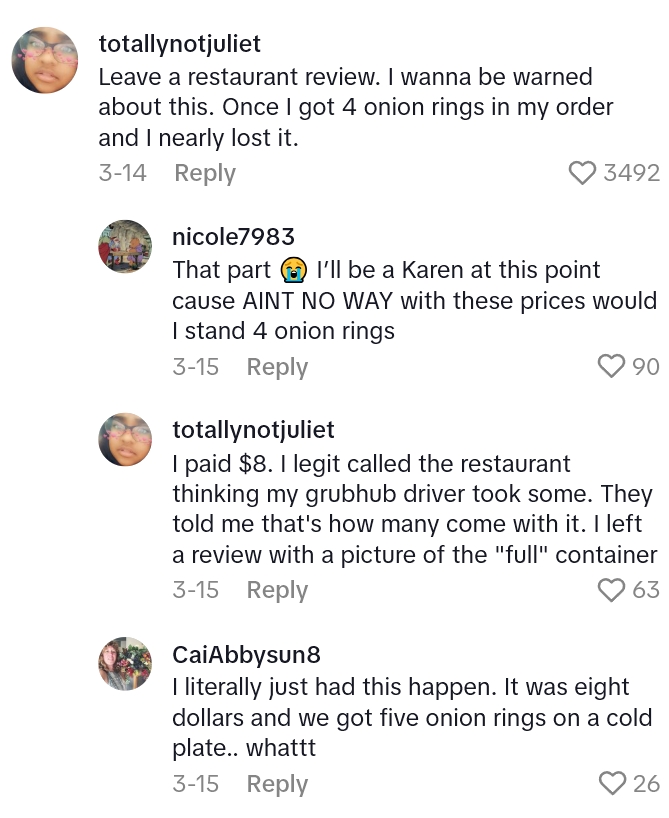 “This is not appropriate. I hate this so much. It’s just not right. A side used to be a bowl of something. It used to actually mean something. But I mean, yeah, aside from what? Nothing? Yeah, this is better, but not good.”