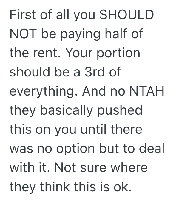 She thinks I’m being unfair since he pays now, but I feel like I lost the home dynamic I agreed to.