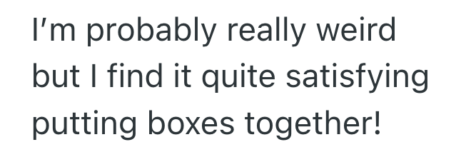 When I showed up and started putting together boxes, she came up to me and said “what are you doing?”
