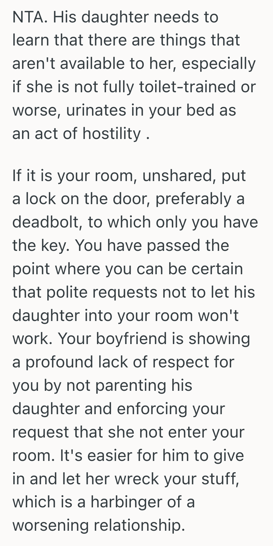 AITA for asking my boyfriend to not let his daughter in my room when I’m not there?