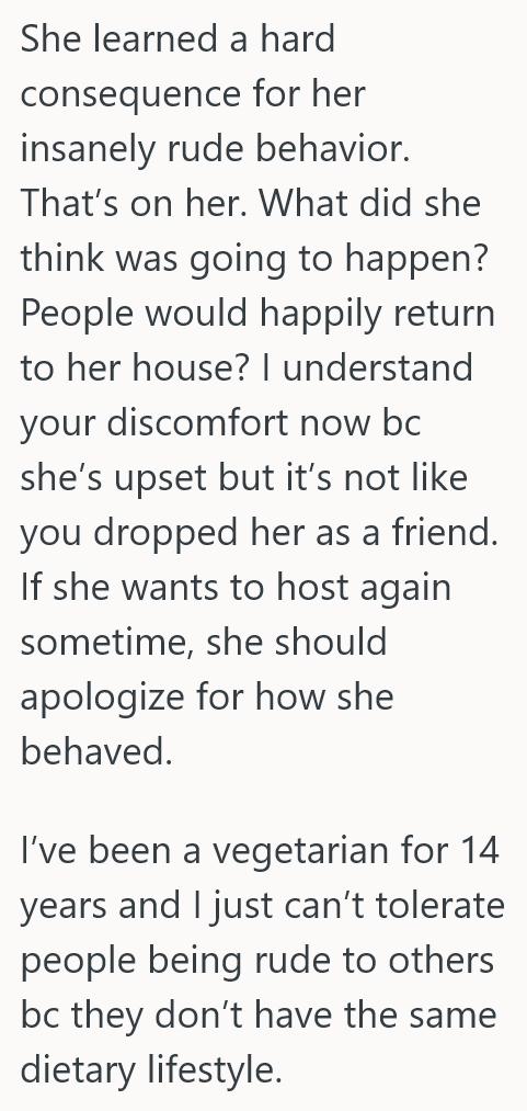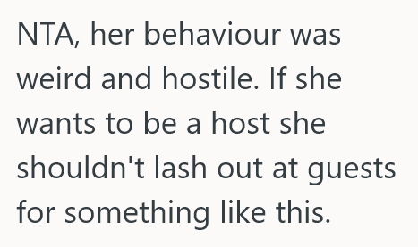 On one hand, she has the right to set the rules in her place and she’s upset now, on the other it seemed really petty and the rude reaction was over the top.