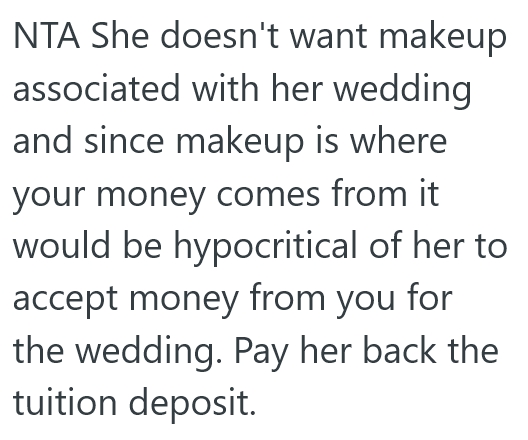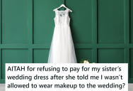 AITAH for refusing to pay for my sister’s wedding dress after she told me I wasn’t allowed to wear makeup to the wedding?