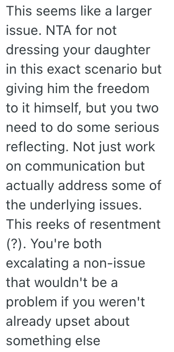 I told him that he clearly didn’t care if our daughter wore that outfit because he was unwilling to dress her himself.