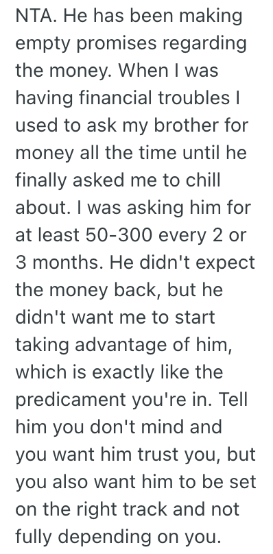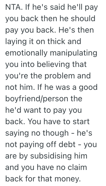 I brought this to his attention and said that it’s not about the money itself, its about you saying you’ll pay me back but never do.