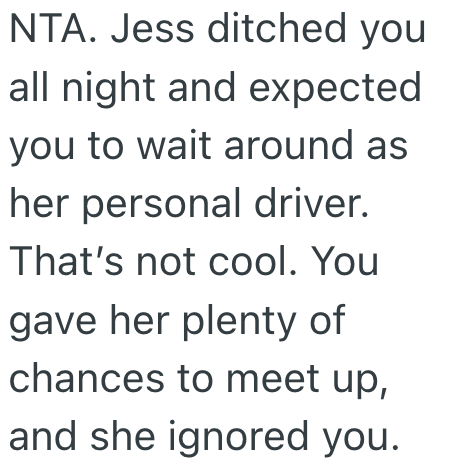 She ignored me the whole night, treated me like her personal chauffeur, and expected me to wait for her and her random friends?