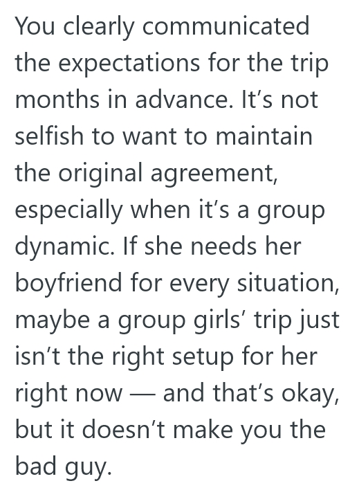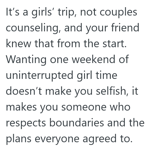 AITA for telling my friend she can’t bring her “emotional support” boyfriend to my trip when we specifically agreed it would be a girls’ weekend?