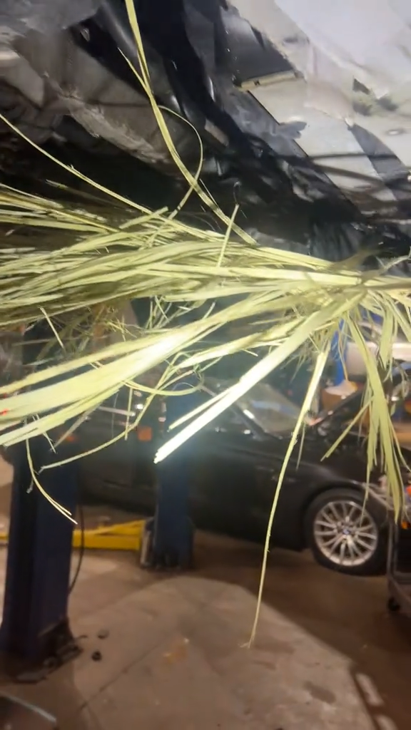 “BMW hit a palm frond up through the belly panel and shot it straight into the transmission oil pan.