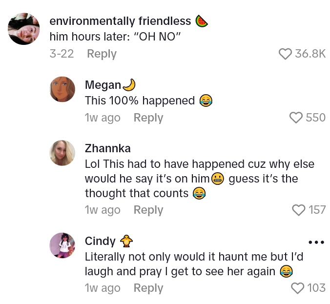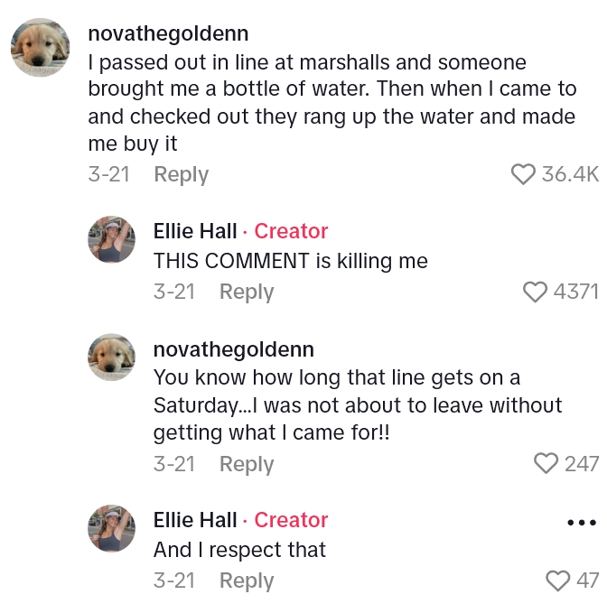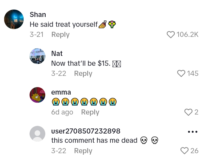 “And then he scanned them and like, put them in my thing. Not me like, waiting. I was like, ‘oh, surely he’ll like, take off the charge like, I’m not paying for my own birthday bouquet.'”