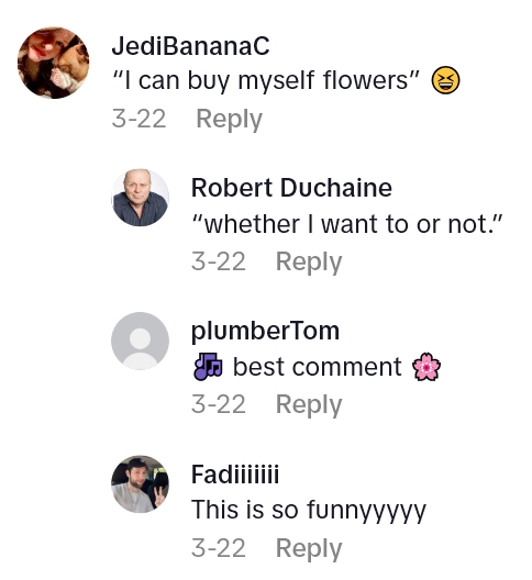 “No, um, I just like, paid for my own birthday bouquet. Thank you, sir.”